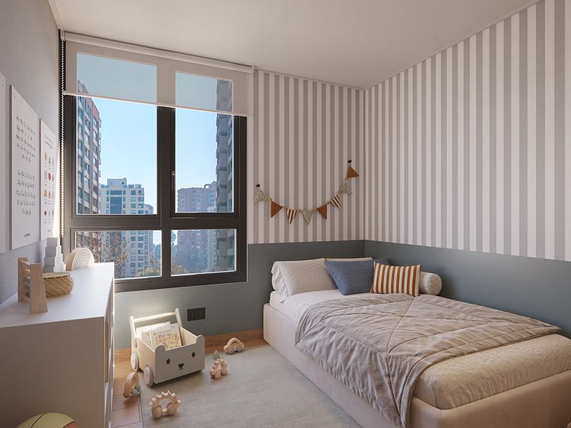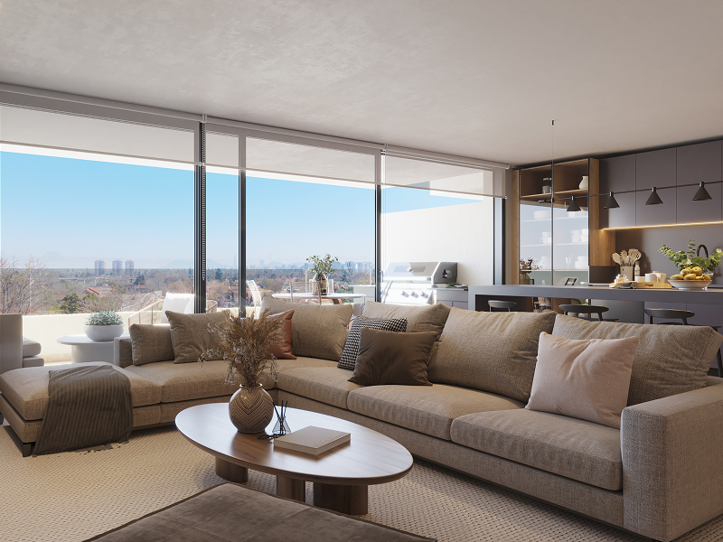 La arquitectura está diseñada para resguardar las vistas entre departamentos y minimizar el ruido exterior, cuidando tu intimidad y la de tu familia.