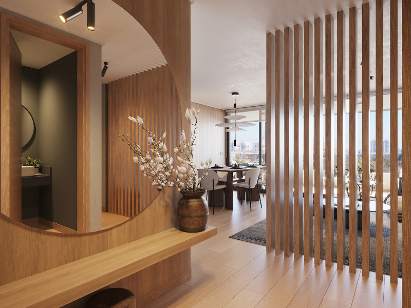 Una propuesta de interiorismo que combina elegancia con funcionalidad. Terminaciones nobles, fáciles de mantener, pensadas para durar.